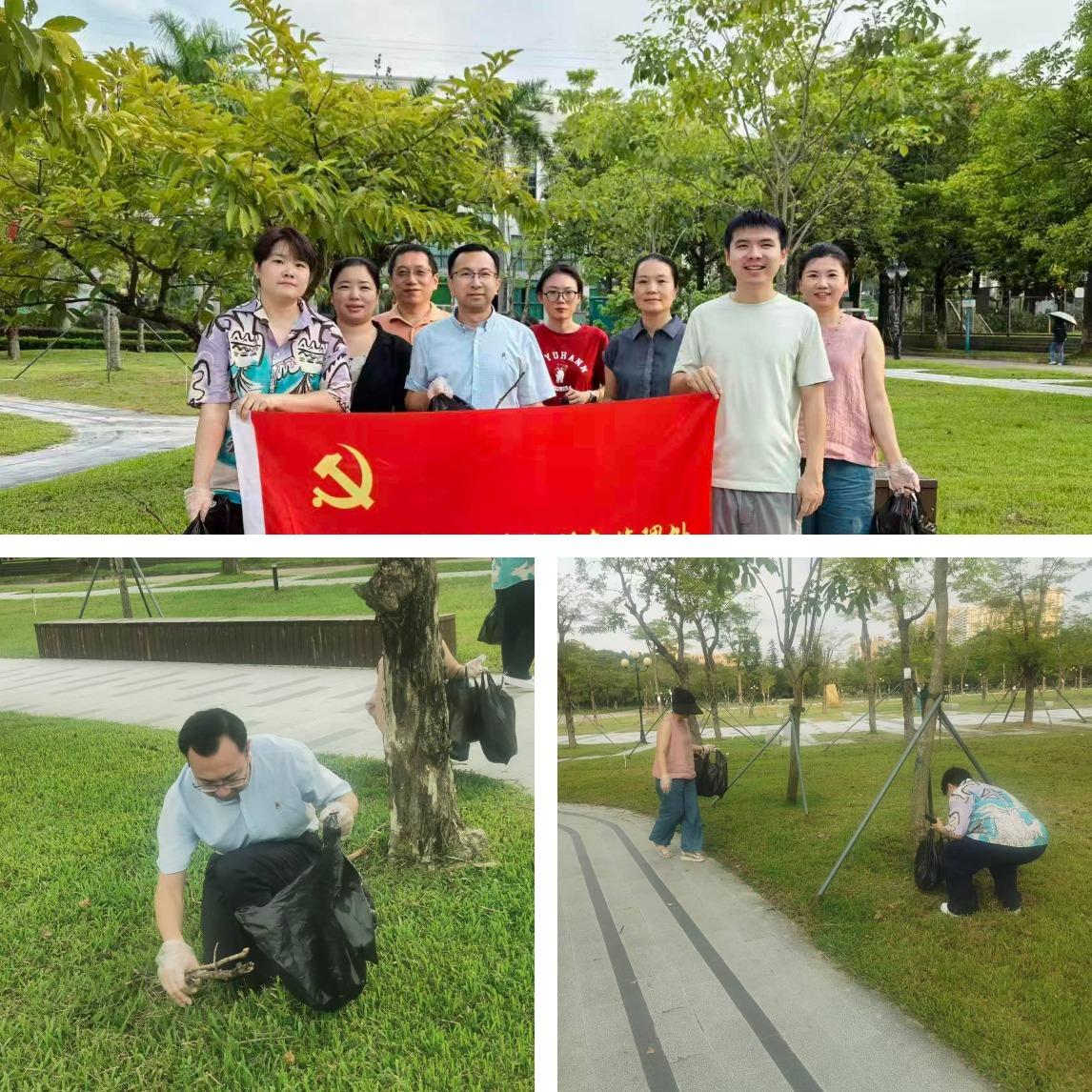 活动现场,我部党员干部充分发挥先锋模范带头作用,以“消除卫生死角、阻断蚊虫滋生”为目标,聚焦绿化带内易积存垃圾、落叶的关键区域,迅速投入环境整治工作。在部门党支部书记、部长李庆春的带领下,全体参与人员手持扫帚、垃圾夹子、分类垃圾袋等工具,分工协作、有条不紊地开展清扫作业。大家不怕脏、不怕累,对绿化带内的积存垃圾、散落杂物及枯枝腐叶进行全面清理,从源头上切断蚊虫繁殖的“温床”,让校园绿化带重新恢复整洁清爽的面貌。